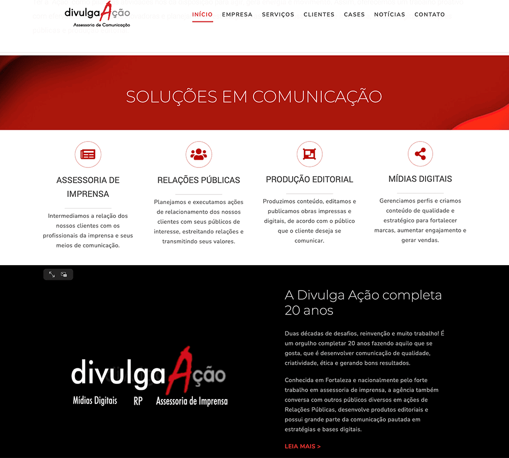 DIVULGA AÇÃO, is a Public Relation Company in Brazil specialized in Media Relations and Corporate Communications. Based in Fortaleza/Ceará the company targeted a local, national and international news from various clients.