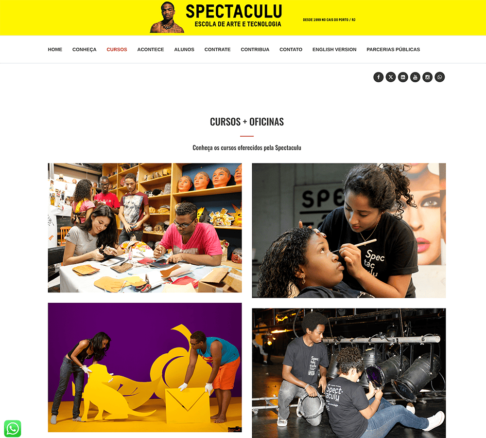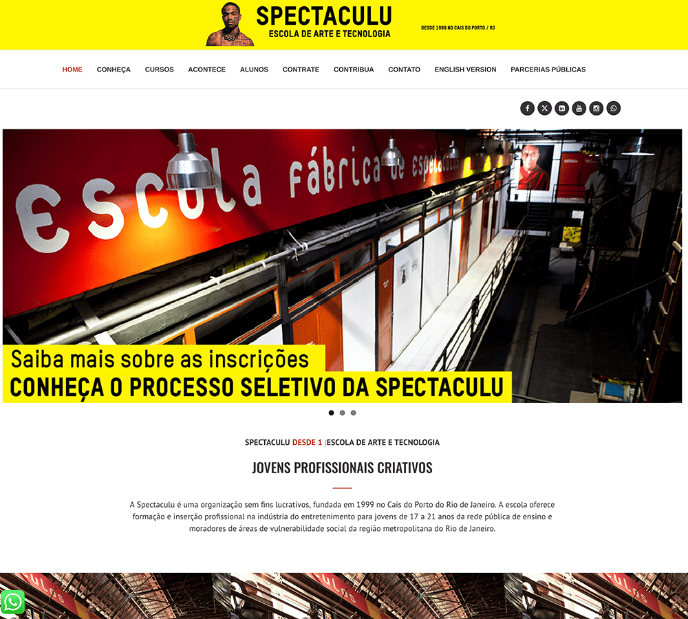 Spectaculu is a Brazilian nonprofit school based in the Port district of Rio de Janeiro since 1999. It provides professional training in entertainment, art, technology, and creative industries for young people aged 17 to 21 from the public school system who live in socially and economically vulnerable areas of Greater Rio. The school focuses on expanding access to knowledge and creating real pathways to employment in sectors that face a shortage of skilled workers.